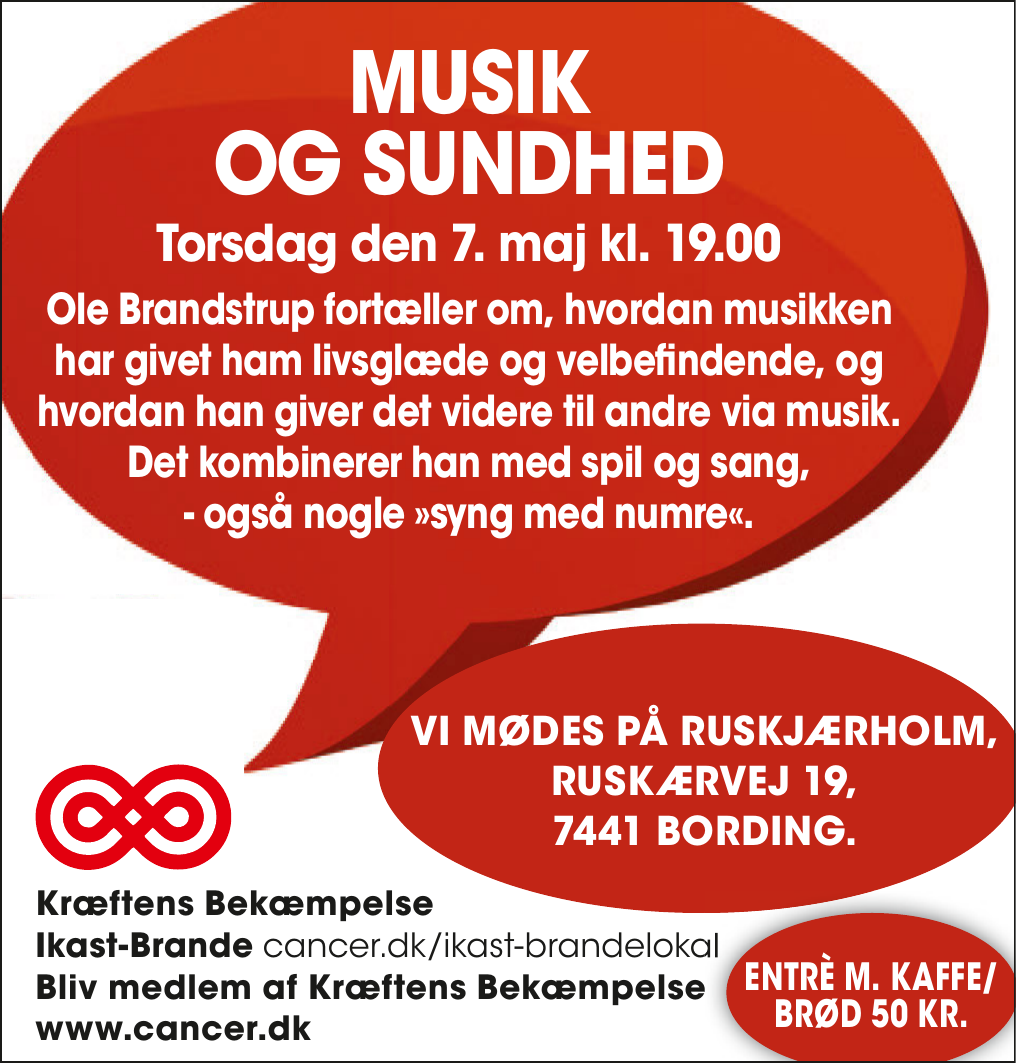 Kræftens Bekæmpelse – Musik og sundhed et foredrag m. Ole Brandstrup.